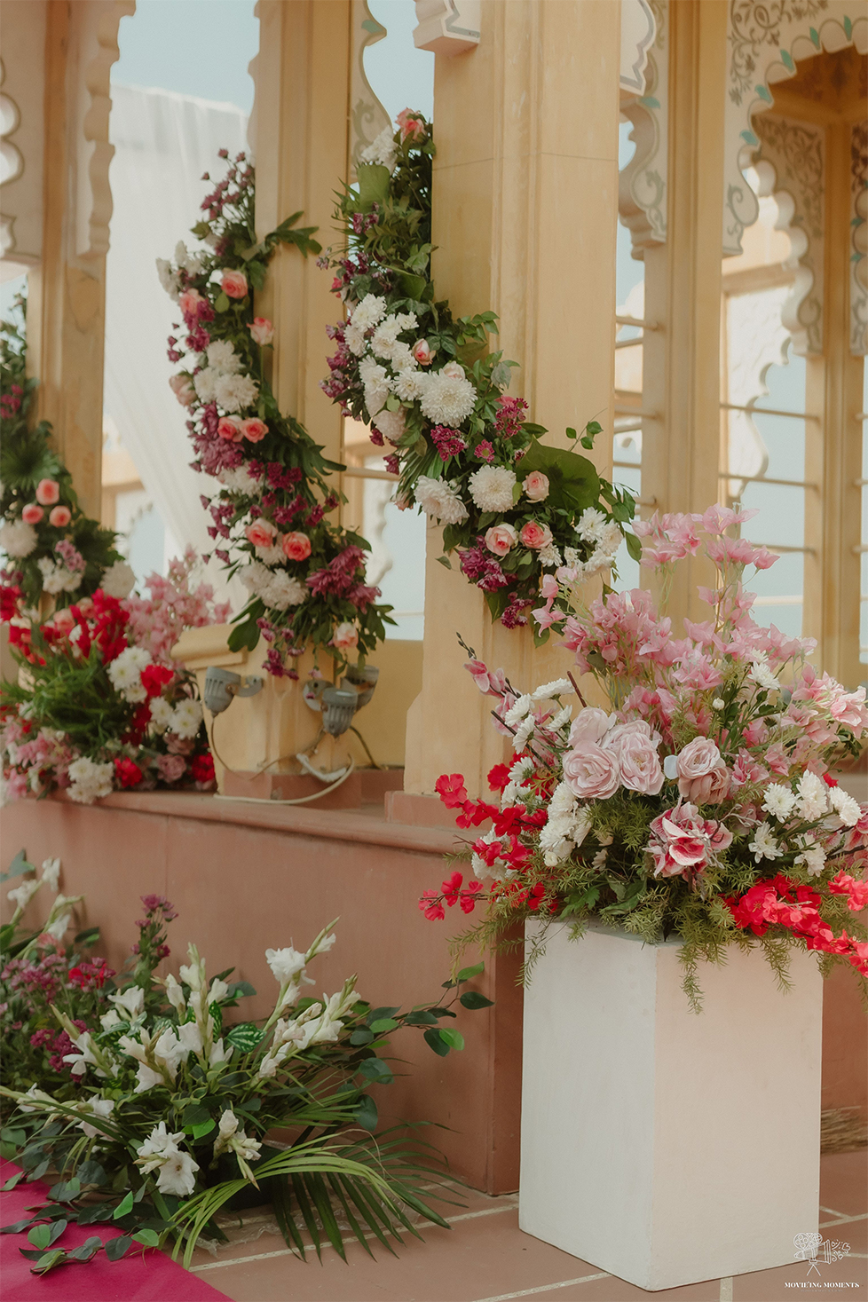 Flower Arches & Backdrops: A floral arch for the ceremony, especially for an outdoor wedding, creates a romantic and picturesque setting. A floral wall backdrop is also an excellent choice for photo ops.